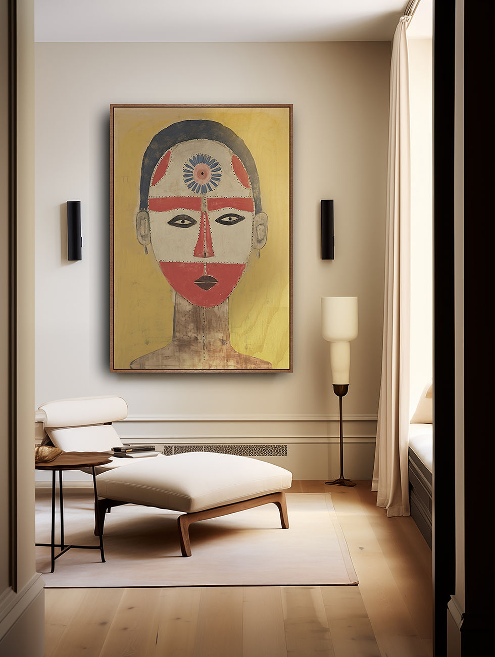 Naive Faces is a collection of expressive portraits that embrace the beauty of raw simplicity. Inspired by Hanneke van de Pol’s early drawings as a young child (becoming an artist), these youthful impressions are reimagined with the skill of her mature artistry. Each face tells its own story—raw, honest, an exclusive edition of 1/1. The work is an exclusive print with transparant and solid inks on poplar wood, where the natural grain of poplar wood panel adds of an extra layer of soul to the work of art. A tribute to intuition, her youth, and the charm of the unpolished. Each work is unique, signed on the back, and has the look and feel of an unpolished painted portrait directly on wood. The works are framed in handmade solid mahogany wooden frame to complement the raw style of the artworks.